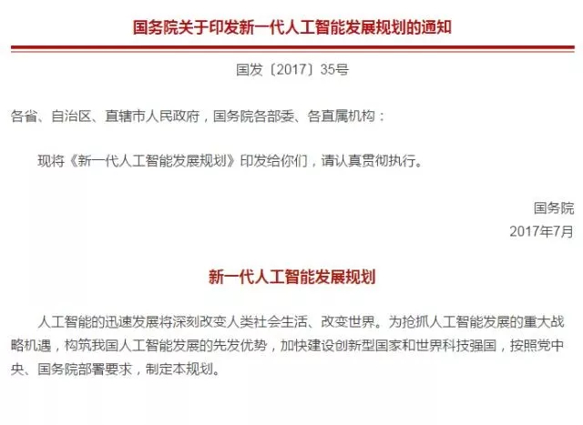2017 年 7 月,中国国务院发布《国务院关于印发新一代人工智能发展规划的通知》,明确指出人工智能成为国际竞争的新焦点, 应逐步开展全民智能教育项目, 在中小学阶段设置人工智能相关课程,逐步推广编程教育,建设人工智能学科,培养复合型人才,形成我国人工智能人才高地。